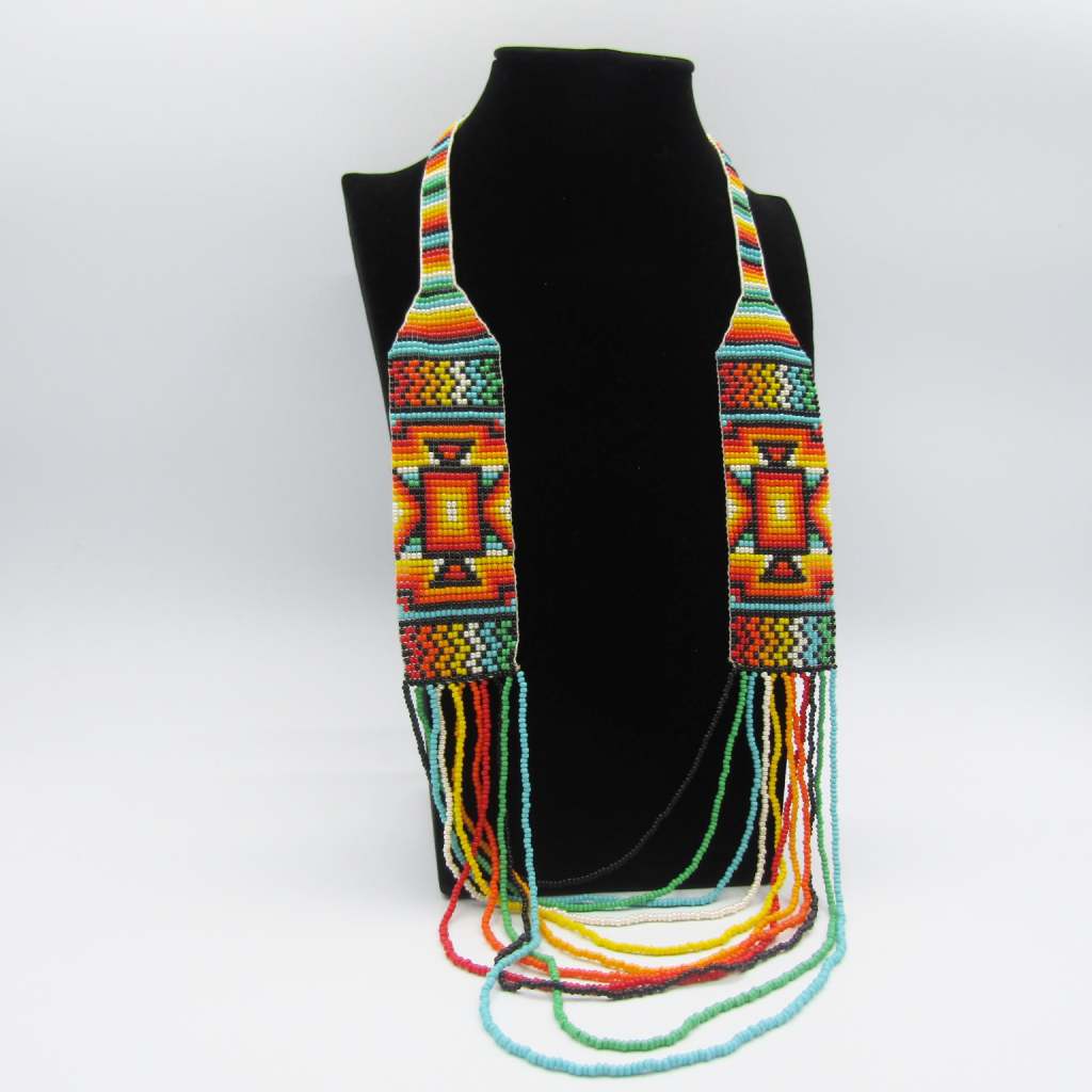 Handmade glass bead necklace by Embera artisans from Antioquia, Colombia. 100% authentic. Vivid colors and symbolic geometric shapes that express the culture, nature and spirit of Colombia.