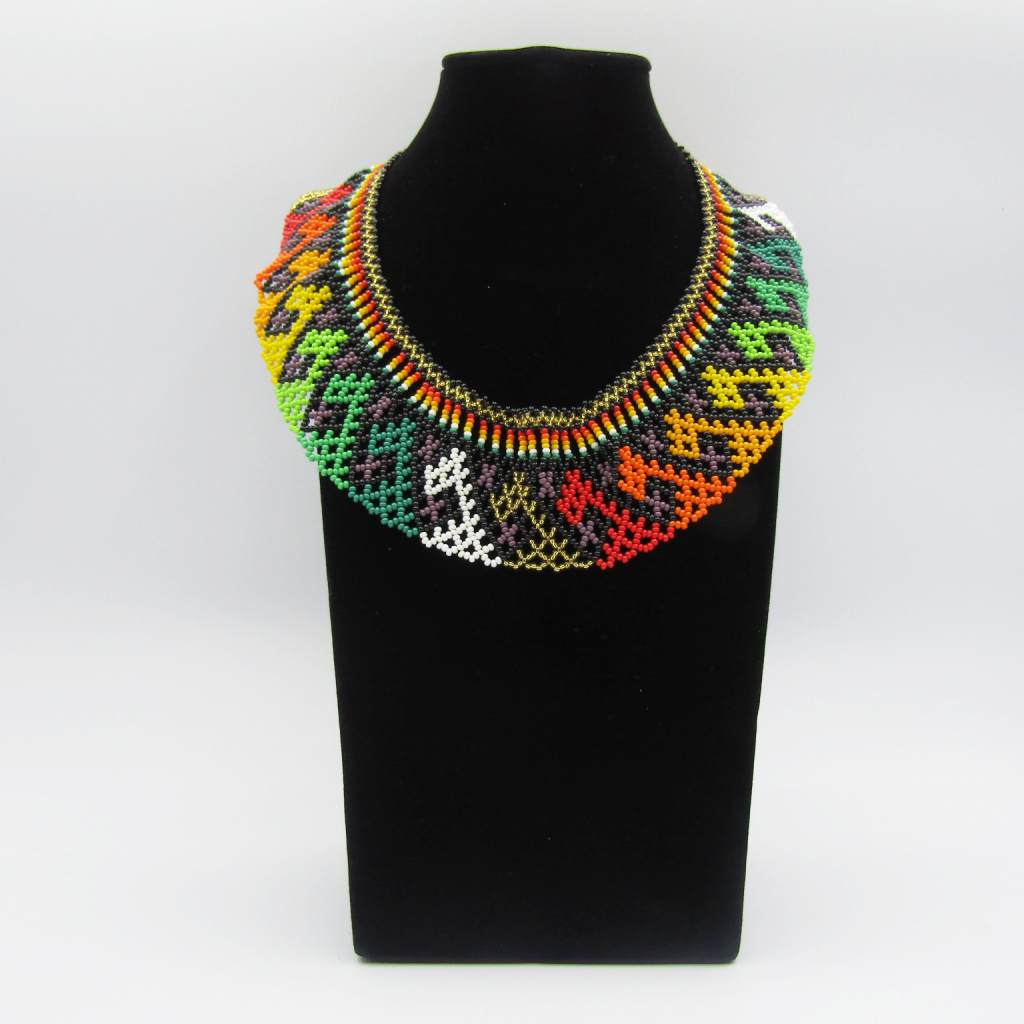 Handmade glass bead necklace by Embera artisans from Antioquia, Colombia. 100% authentic. Vivid colors and symbolic geometric shapes that express the culture, nature and spirit of Colombia.